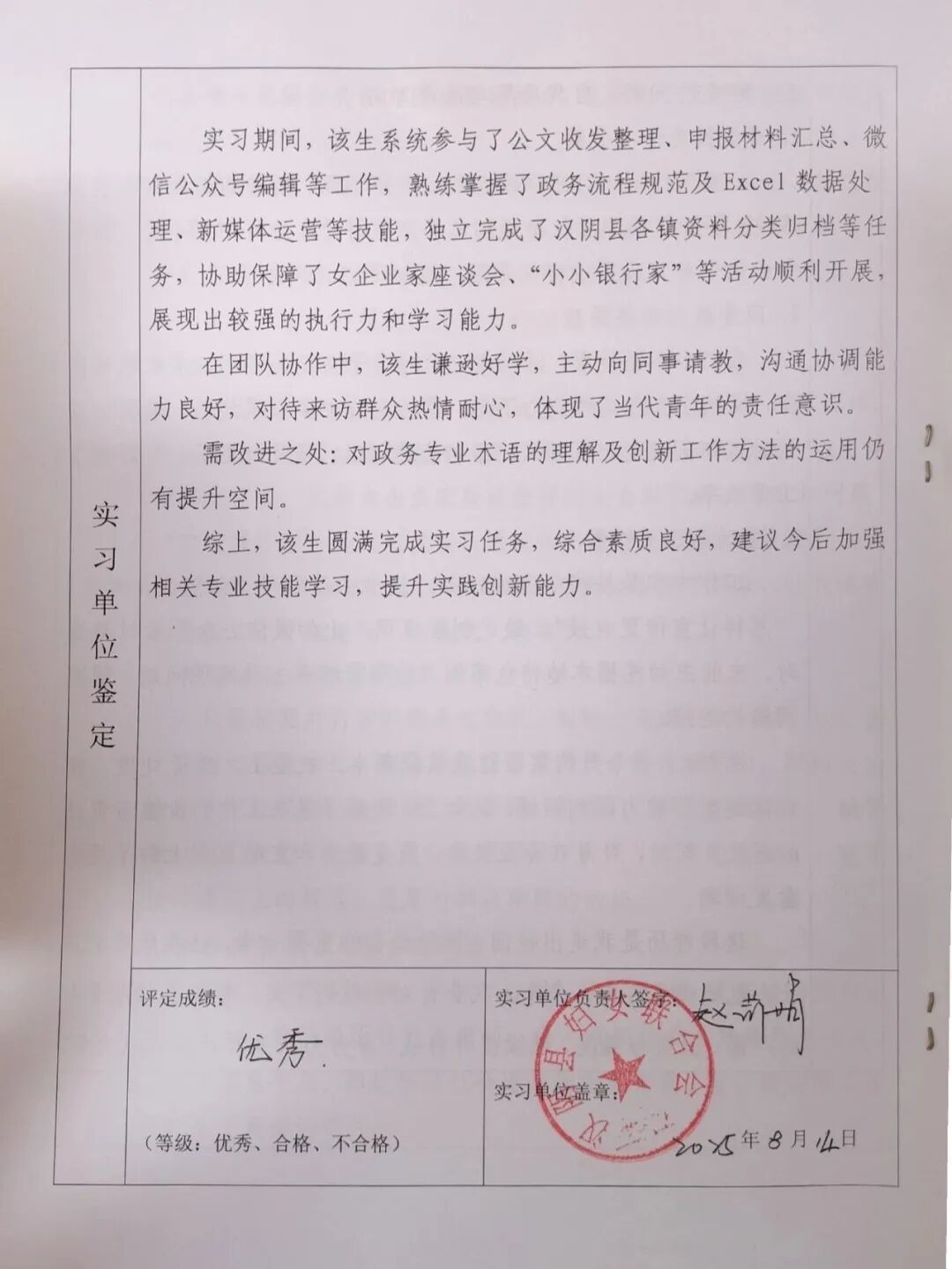 工作能力得到提升:通过公文处理、材料整理等工作,我对政务流程的规范性有了清晰认识,公文写作与处理能力得到锻炼;微信公众号编辑工作让我掌握了基础的新媒体运营技巧,包括素材筛选、图文排版等;资料整理过程中,Excel表格制作与数据分类能力也得到提升。