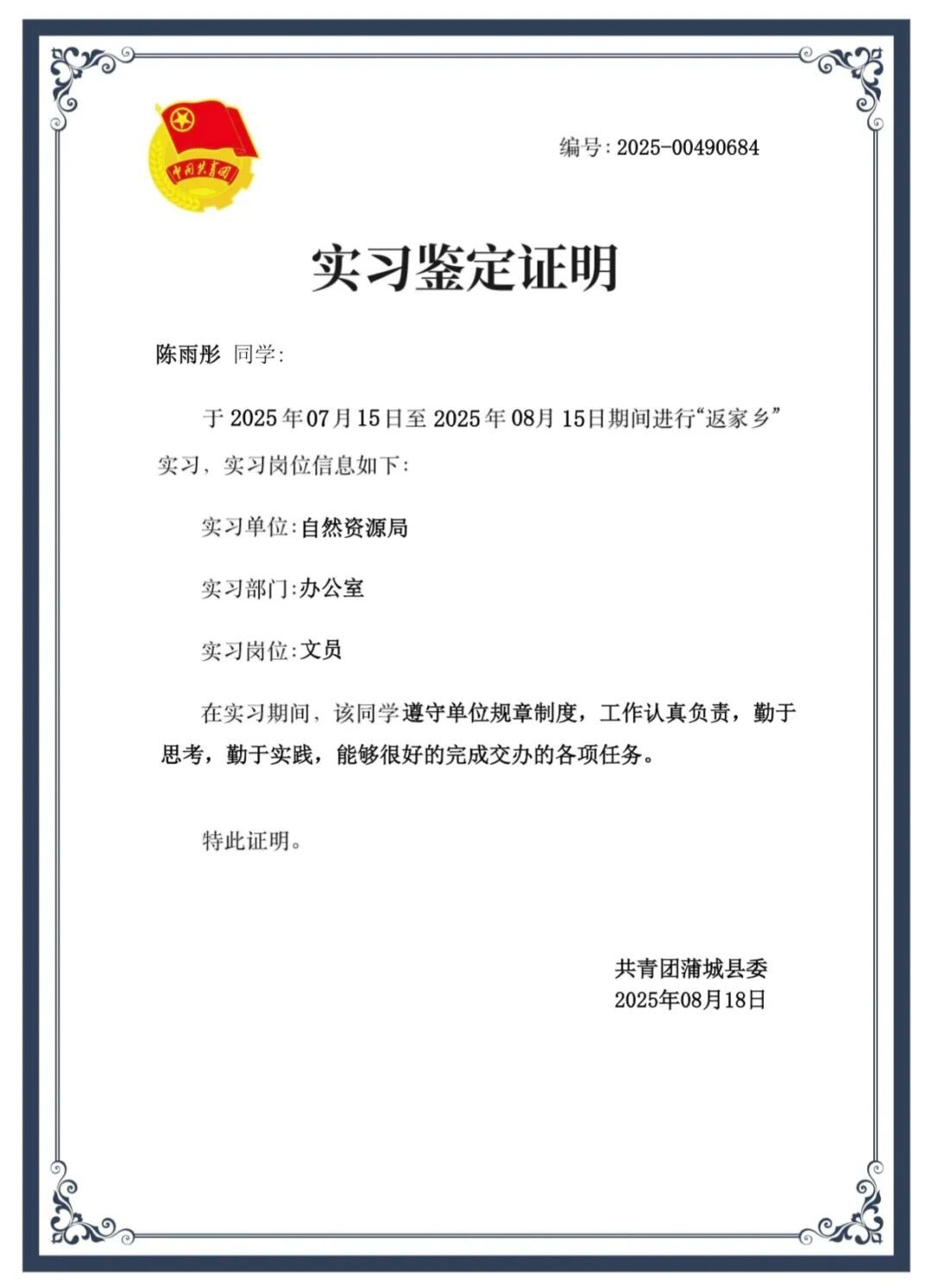 见习内容:在自然资源局办公室见习期间,主要承担文件整理与归档、信息录入与核对等基础性工作,确保资料准确有序;参与办公室日常清洁与环境维护;协助材料分发,初步了解基层自然资源管理工作流程。