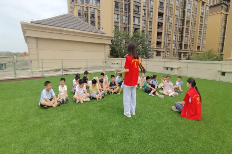 实践队组织的"趣味运动"总是充满欢声笑语。社区草坪成了欢乐场!孩子们在阳光下尽情奔跑、做游戏,实践队成员在旁守护、互动 。教育关爱不只是课堂辅导,更是让孩子们在自然里释放活力,用陪伴接住每一份童真,让自己这个暑假,知识与快乐并肩成长~经典游戏经过队员们的创新改编,既锻炼了孩子们的体能,又培养了团队协作意识。