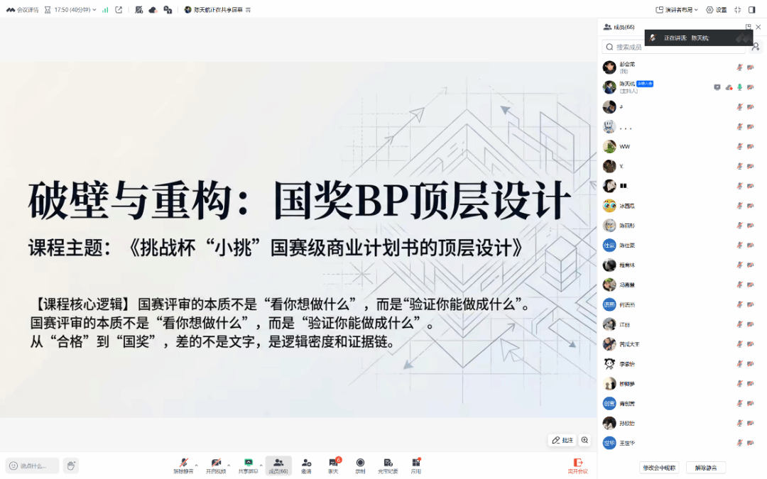 本次会议以项目书优化为核心主线,干货输出精准且极具实操性。指导团队以“理论讲解+案例剖析+误区规避+互动答疑”的闭环模式,精准落地活动目标;明确项目书必须包含详实的市场调研数据与可行的痛点解决方案,建议通过实地调研测算真实市场容量,以实证数据支撑市场策略,缺乏数据支撑的项目难以打动评委。