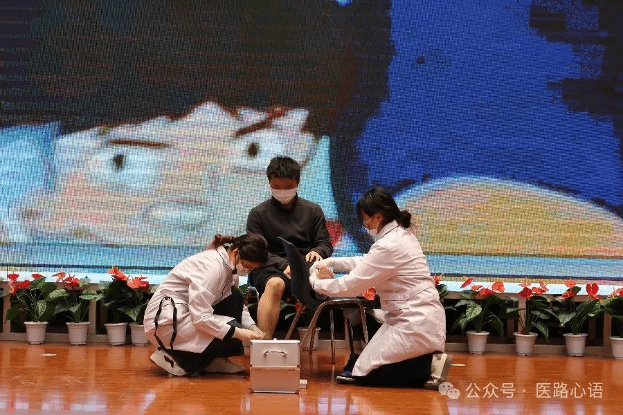 各队伍按照抽签顺序进行场景剧的展示,他们展示出在火灾现场、运动伤害现场、踩踏现场、触电现场、地震灾害现场等场景出现意外时应采取的急救措施,每支队伍的展示都体现出我们医学院锐意进取,昂扬向上的精神风貌。