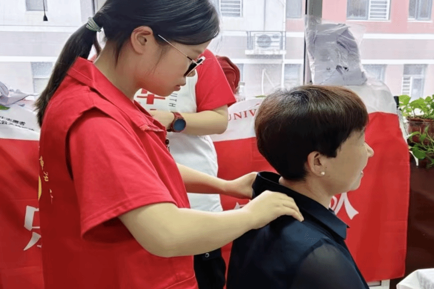 暑期“三下乡”活动,将医学生的足迹留在了广袤的土地上。为了更好的服务村民、普及健康知识、解决村民简单的健康需求。西安培华学院医学院青歌志愿服务队、乐康社会实践队等多支队伍进行志愿服务,以当地居民身体健康为根本,开展中医理疗特色实践活动。志愿者们为村民测量血压,运用“揉三按一法”为村民进行颈肩按摩,刮痧拔罐,为村民教八段锦、拍八虚等健康理疗操,为村民们缓解身体不适。