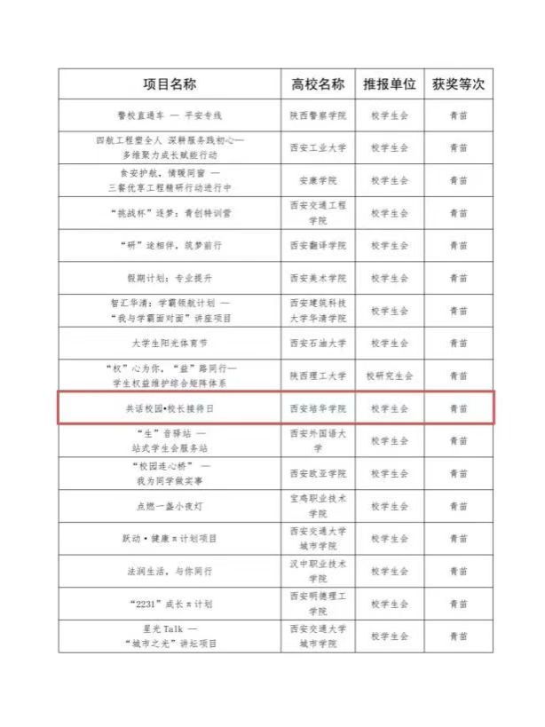 我校学生会组织喜获一项荣誉:西安培华学院“共话校园•校长接待日”校园服务项目获评青苗示范项目。