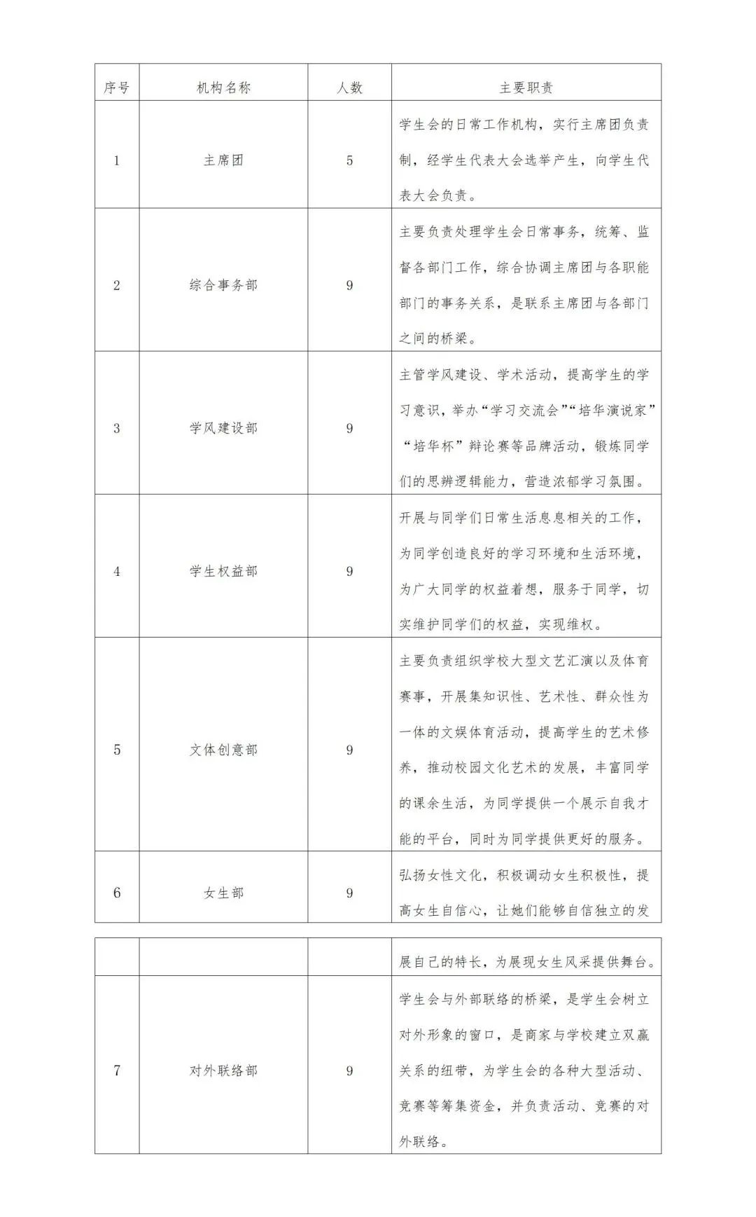 为落实共青团中央、教育部、全国学联联合下发的《关于推动高校学生会(研究生会)深化改革的若干意见》,并结合《关于巩固高校学生会(研究生会)改革成果的若干措施》文件要求,接受广大师生监督,现将我校2021—2022学年学生会(研究生会)改革情况公开如下。