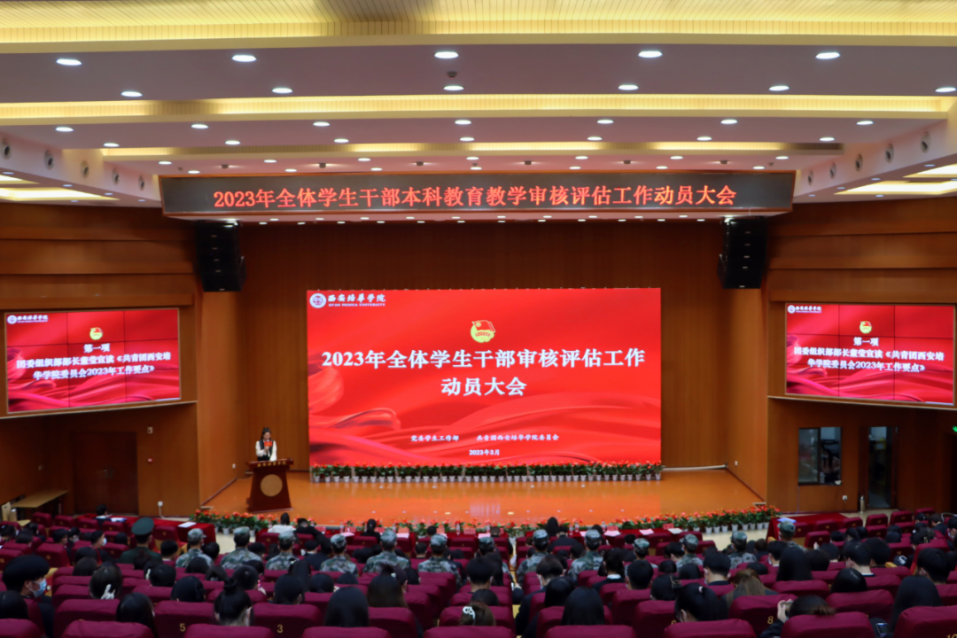 为进一步深化审核评估学习宣传,营造“人人参与评估、评估人人知晓”的氛围,落实《西安培华学院本科教育教学审核评估学工系统学习教育宣传方案》,按照党委学工部(校团委)统一安排部署,3月8日在维之图书馆报告厅举行2023年全体学生干部审核评估工作动员大会。党委学工部部长蔡亮,党委学工部副部长姚斌、权勇太,校团委副书记王冰及校团委全体成员,各二级学院团委书记、副书记,学生会指导老师,校级学生组织骨干代表,二级学院团、学、青干部代表共计400余人参加此次大会。