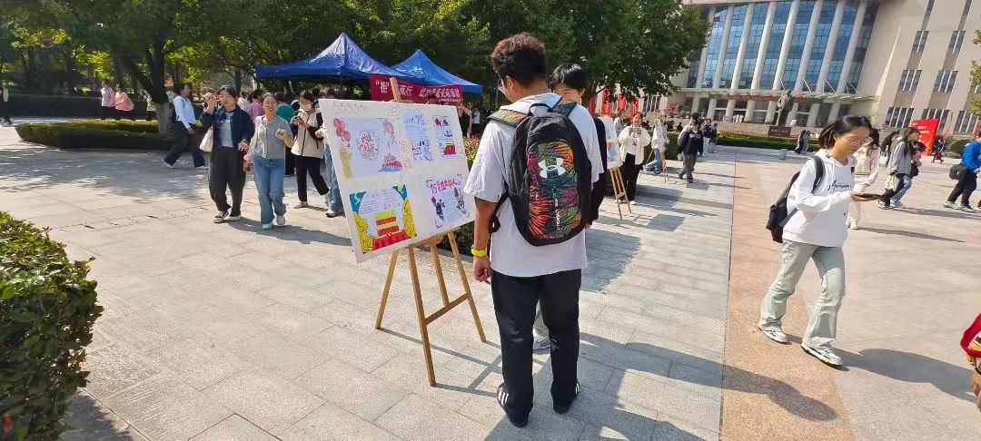 观展期间,领导、老师、同学们络绎不绝,他们驻足欣赏,沉浸在红色的世界中,感受着书画之美带来的灵魂冲击。