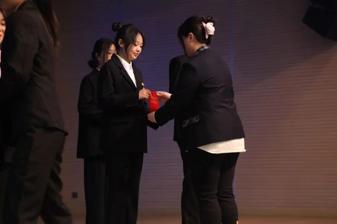 团支建设中心主任卞银姗,团日风采中心副主任焦琪为社团团工委优秀干事颁发证书