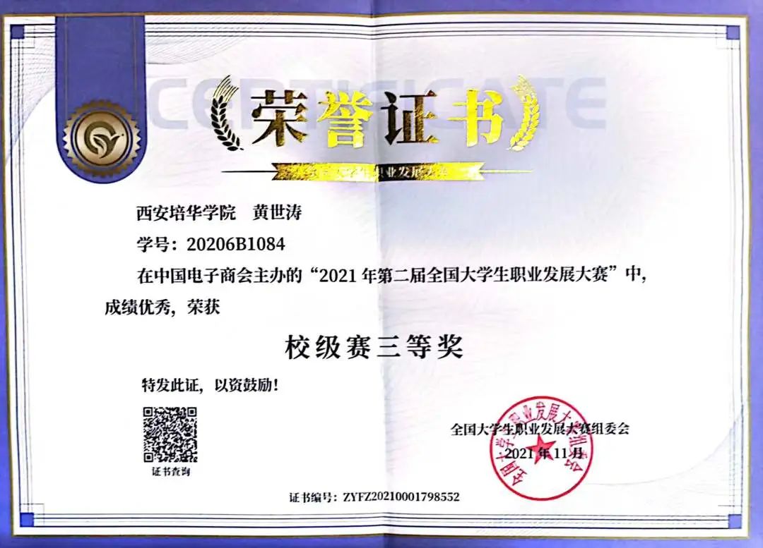 全国大学生职业发展大赛三等奖