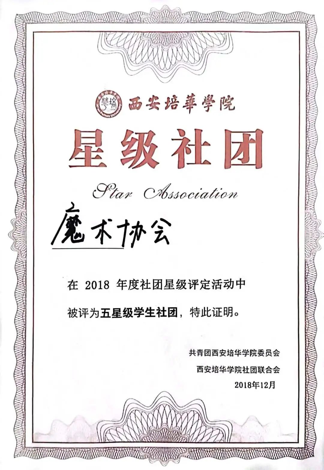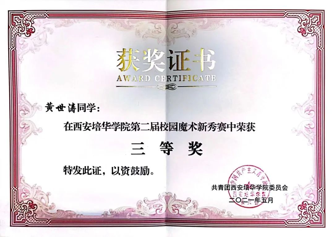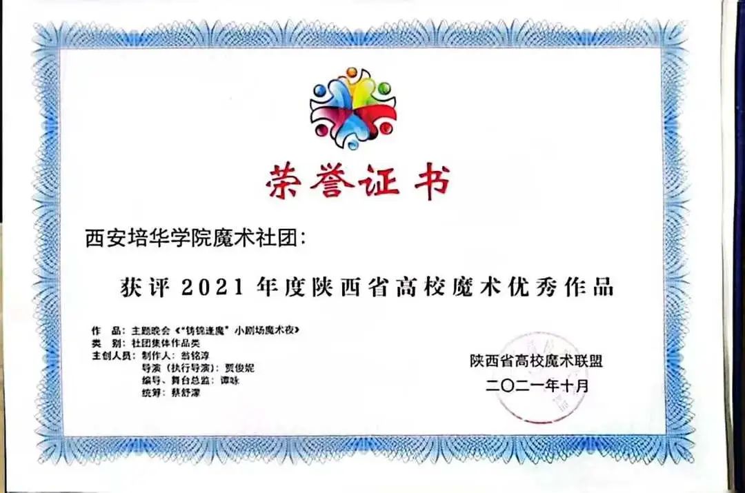 西安培华学院魔术协会在当日荣获共计六项荣誉与奖项: