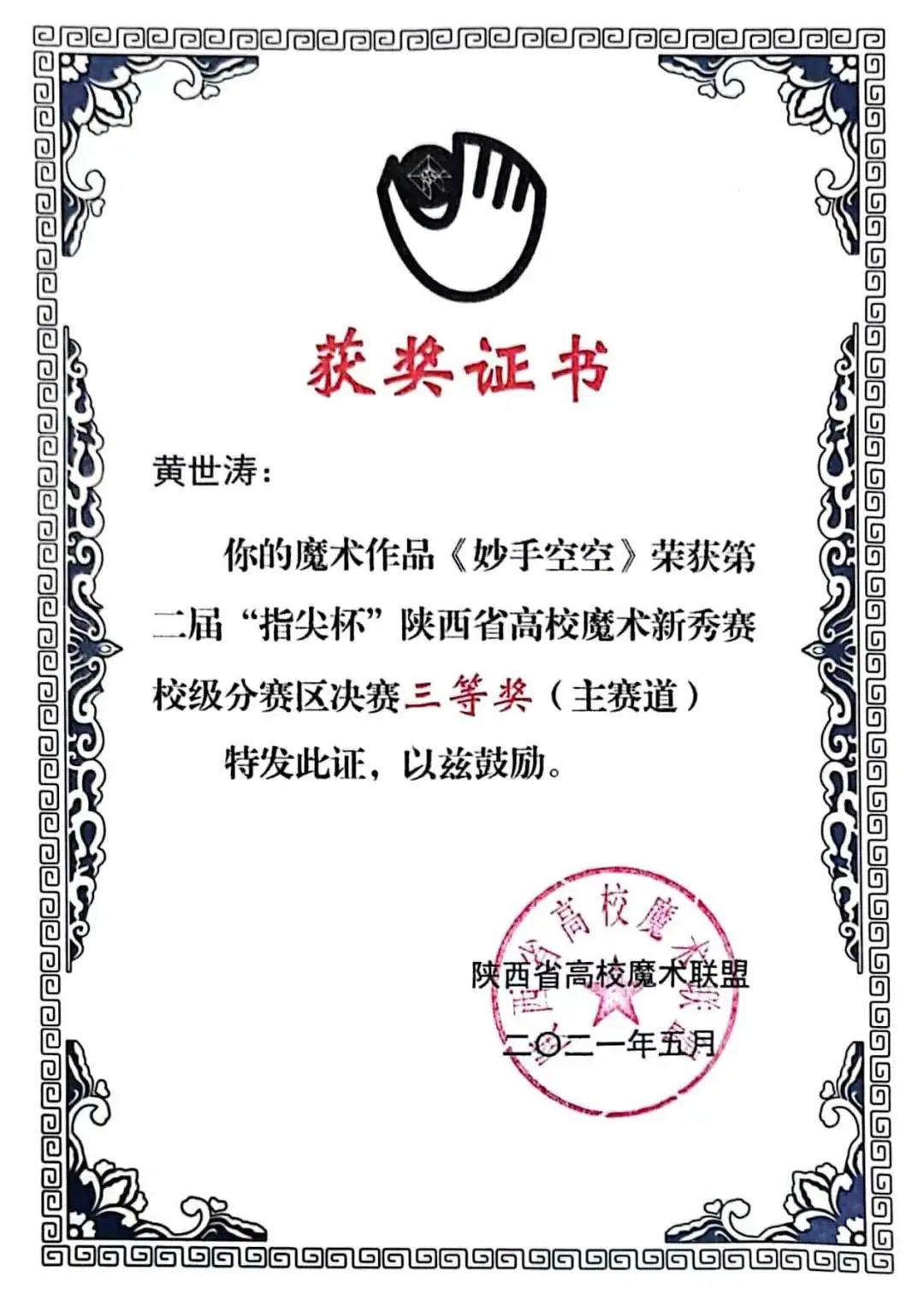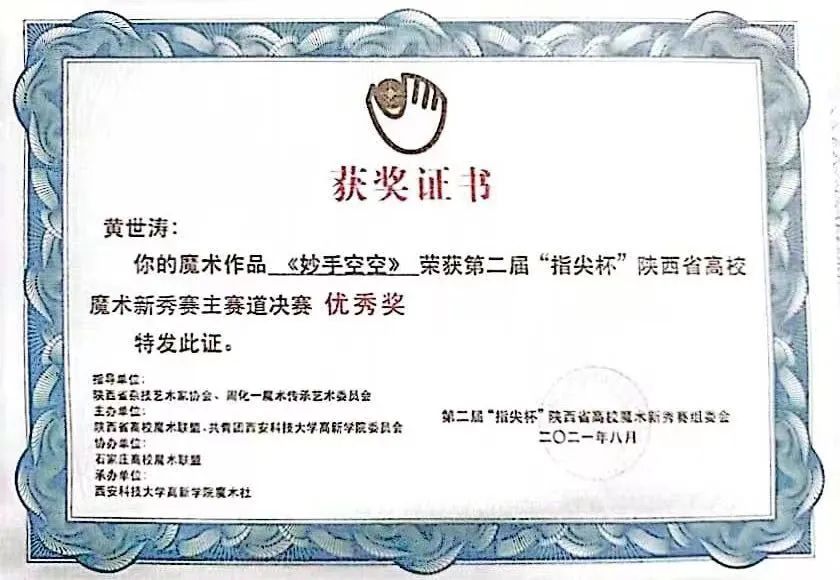 第二届“指尖杯”陕西省高校魔术新秀赛主赛道决赛优秀奖