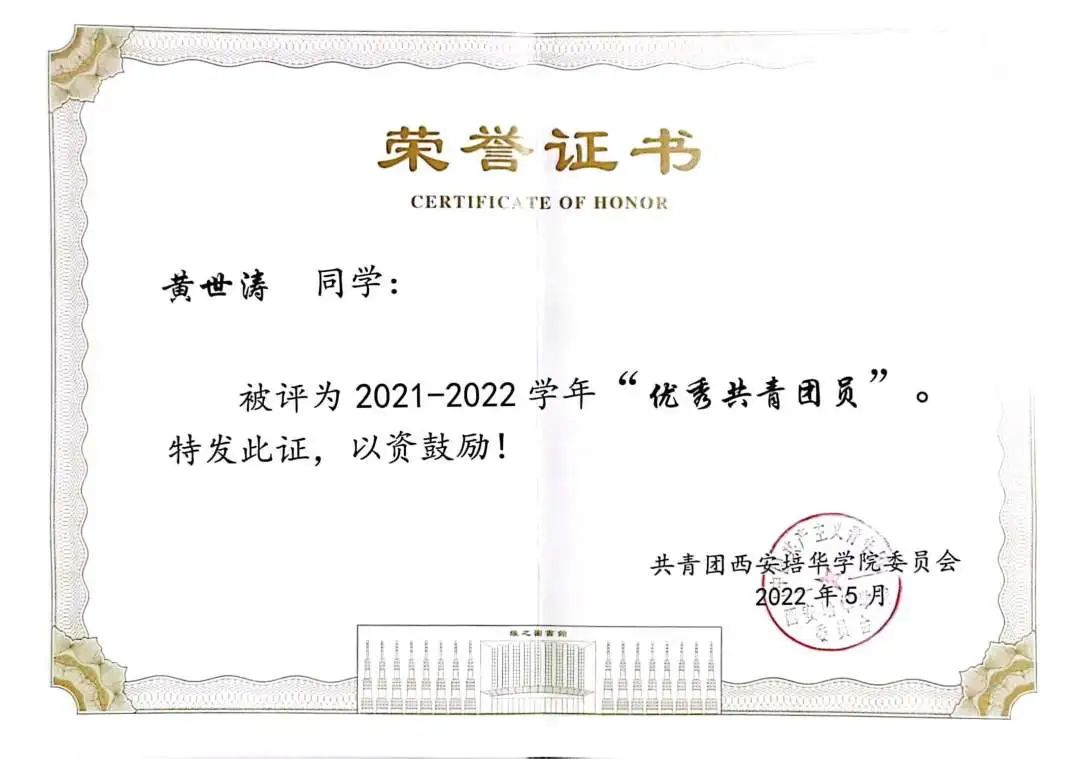 10.2022年5月被评为西安培华学院优秀共青团员