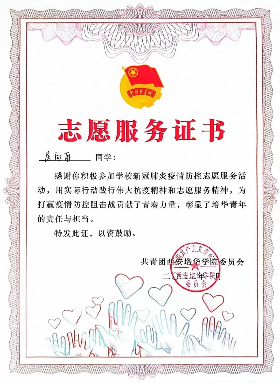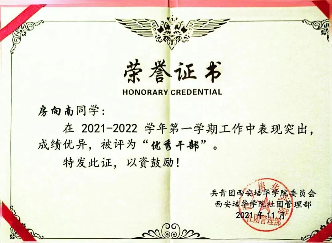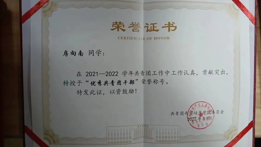 2022年5月获“西安培华学院优秀团干部”荣誉称号;
