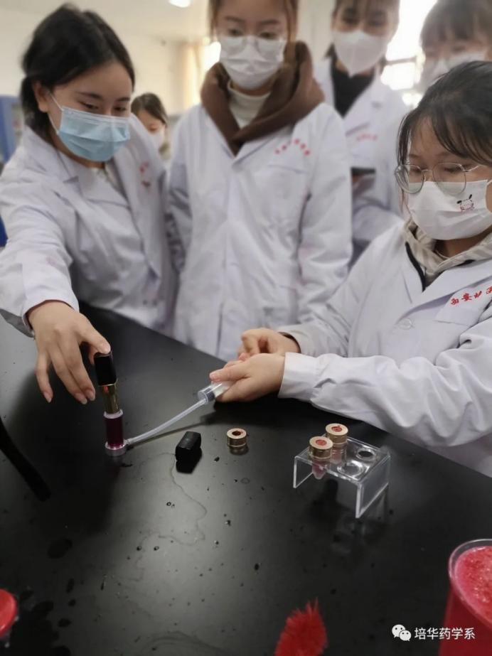 化学作为一门与生产、生活密切相关的学科,在美妆方面也发挥了举足轻重的作用。口红是一类唇用美容化妆品,其主要功能是赋予嘴唇以色调,强调或改变两唇的轮廓,显示出更有生气和活力。在新的学期,为了让药学的同学可以提升实践能力,在2023年3月21日星期二进行了药学创新创业社全体成员制作口红的活动,在至善楼8534教室,每一位同学都穿戴整齐跃跃欲试。