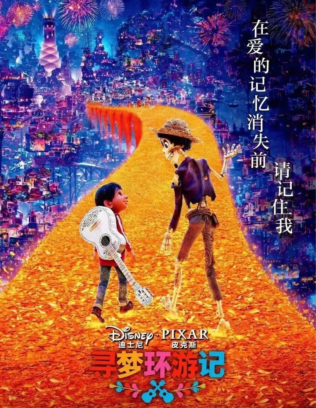《寻梦环游记》是由华特迪士尼电影工作室和皮克斯动画工作室联合制作的动画电影,影片讲述了热爱音乐的小男孩米格,却出生在一个视音乐为洪水猛兽的大家庭里,他想要成为音乐家的梦想遭到家里人的强烈反对。一年一度亡灵节来临之际,米格在追寻梦想的过程中意外进入了亡灵世界,遇见了落魄乐手埃克托,于是他们在这个五彩斑斓的亡灵世界开启了一段奇妙的冒险旅程。《寻梦环游记》灵感米源于传统节日“亡灵节”,墨西哥人认为逝者会进入宇宙天际的无限循环中,在他们眼中死亡才是生命的最高意义,生与死互为补充才完成了一个完整的生命周期,因此死亡并不是生命的终结,逝者依然活在人们的精神和记忆中。等亡灵节到来的时候,逝者便会从地下世界复活,与亲人在人间团聚。钟在亡灵节期间,墨西哥人会将自己打扮成骷髅,并在家中摆上盛大的祭坛与逝者的照片,还有水果、蜡烛、灯座和剪纸,以此来表达他们对亲人的爱与思念。影片中橘色的万寿菊搭建起了人间与亡灵世界的桥梁,墨西哥人相信万寿菊花瓣的颜色和香味可以在亡灵节时帮助逝者找到回家的方向。 在人们传统的观念里,死亡意味着消逝与恐惧,但影片却用明亮的色彩、温暖的烛火、欢快的音乐构建起了一个色彩斑斓的亡灵世界,驱逐了传统意义里死亡带来的黑暗与冰冷之感,取而代之的是一种“长灯如昼,烟火人间”的繁华之景。在那里,逝去的亲人可以在一起把酒言欢;在那里,爱让生死不再永诀。正如村上春树说的那样:“死并非生的对立面,死是生的一部分,只要有人记住你,你就还活着。”所以不必害怕,只要还爱着,只要还记得那个思念的人,一定会在某个时刻,以一个温柔的姿态拥抱你,和你重逢。