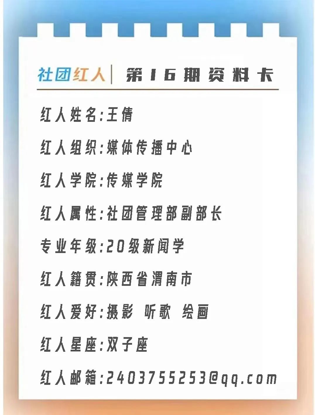 社管红人,又双叒叕来啦!这次是温柔且上进的学姐先来get本期的红人信息卡吧!▼