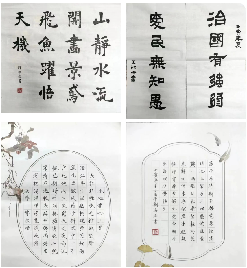 在我加入茂林书画协会之后,发现会长李晨曦书法写的是真的很好看,对书法文化非常之热爱。经过一年的工作学习感觉他很热情有趣,很会活跃气氛,我们对这个社团马上就喜欢起来了。平时书法教学活动,对大一学生也特别地耐心和细心,不过对我就非常不耐心!!!