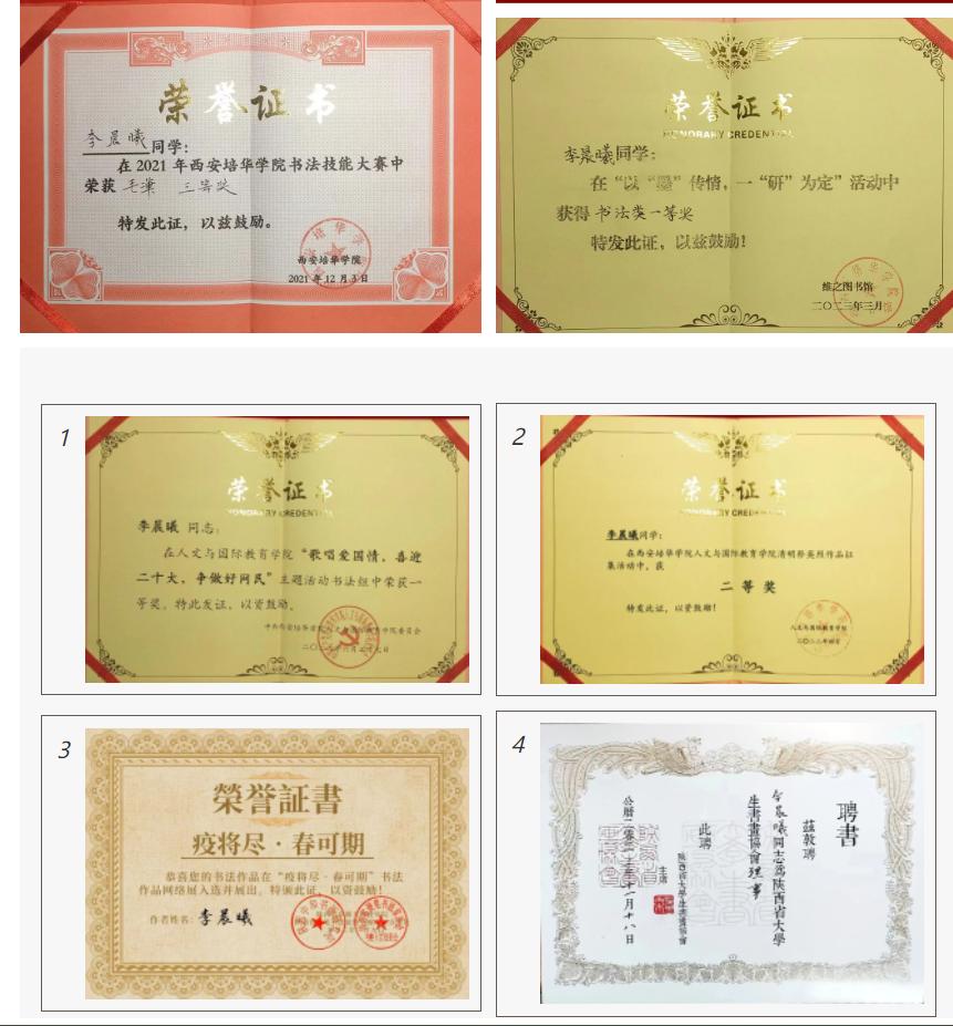 2021年西安培华学院举办书法技能大赛荣获三等奖
