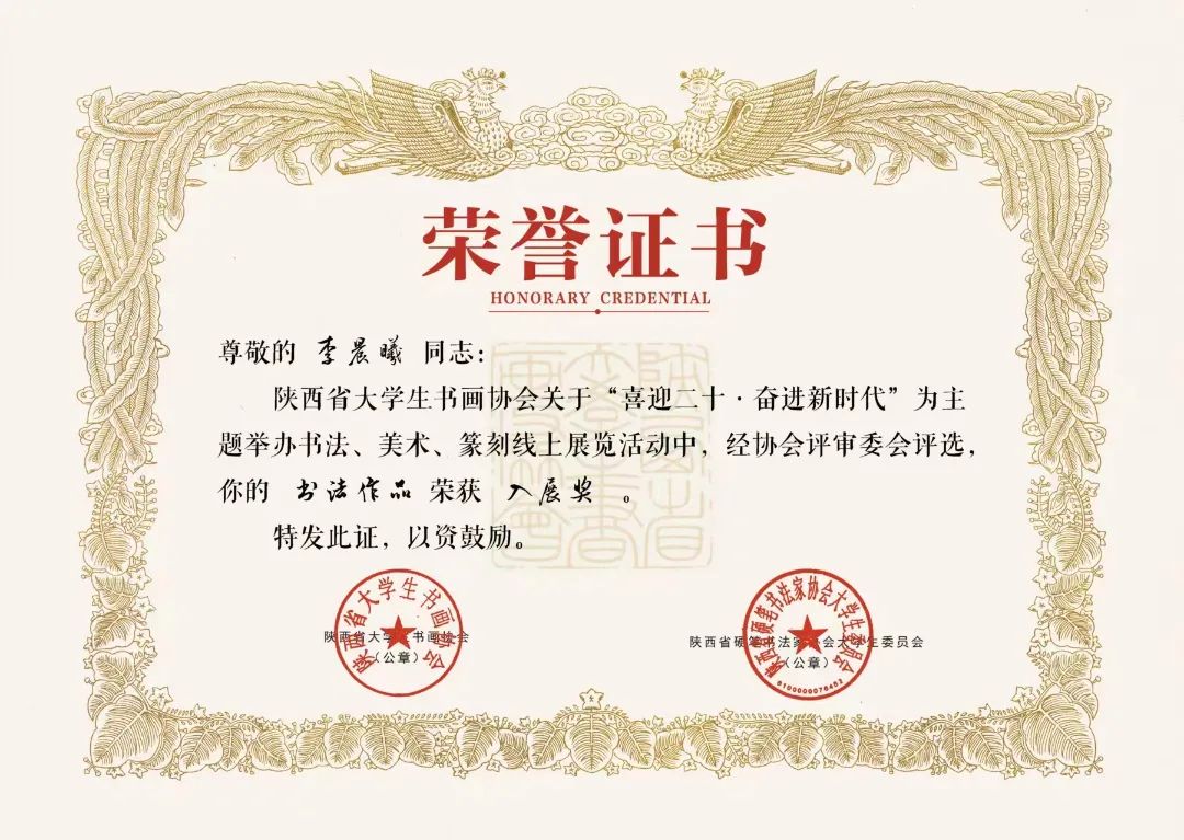 2022年书法作品入展陕西省大学生书画协会举办喜迎二十大奋进新征程书法国画篆刻作品展