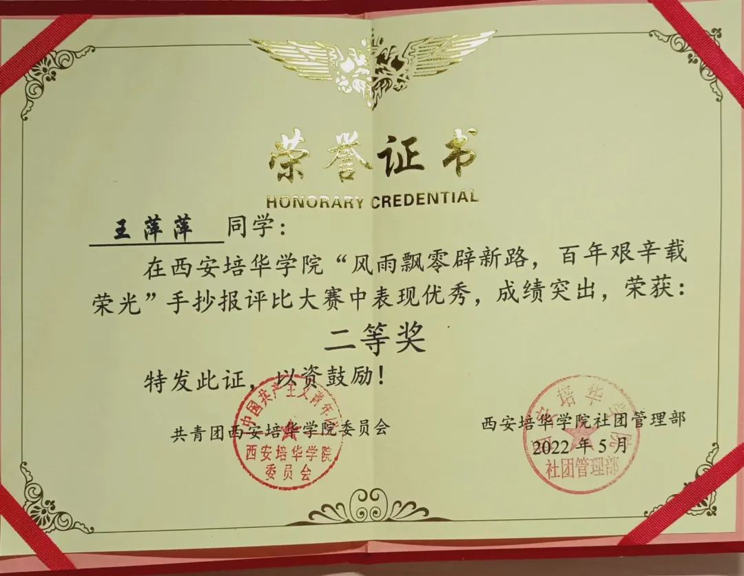 2022年5月“风雨飘零辟新路,百年艰辛载荣光“手抄报二等奖