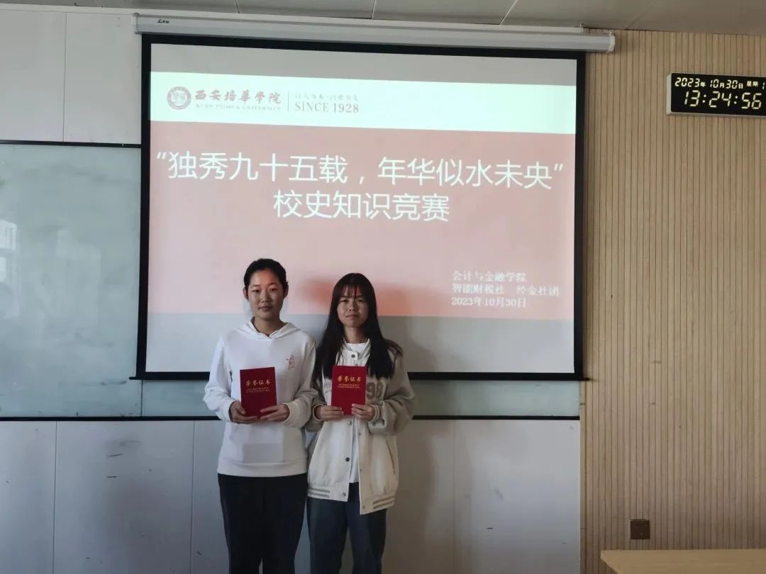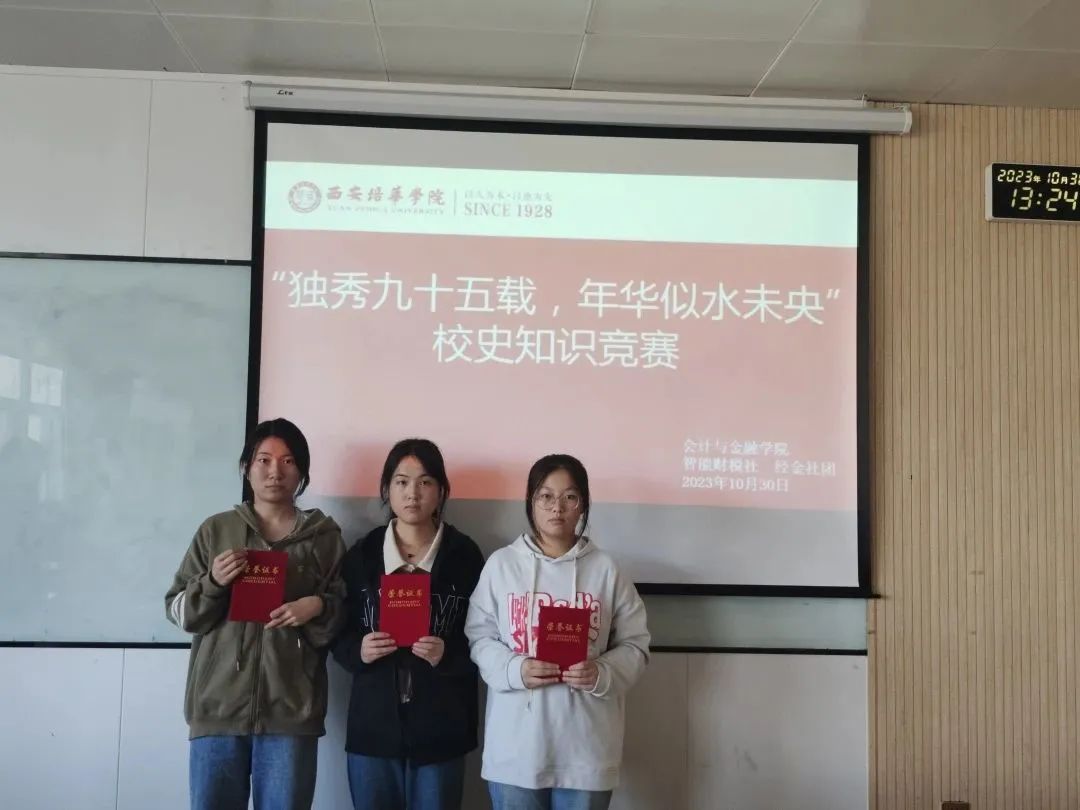 为庆祝西安培华学院建校95周年,加深同学们对学校悠久历史、深厚文化底蕴的了解,提高同学们作为培华学子的自豪感。同时为了增进同学之间的交流,营造和谐融洽的氛围,丰厚同学们的校园生活,陶冶情操。智能财税与经金社团一同于2023年10月27日在豐園西广场举办了主题为“独秀九十五载,年华似水未央”的校史知识竞赛。