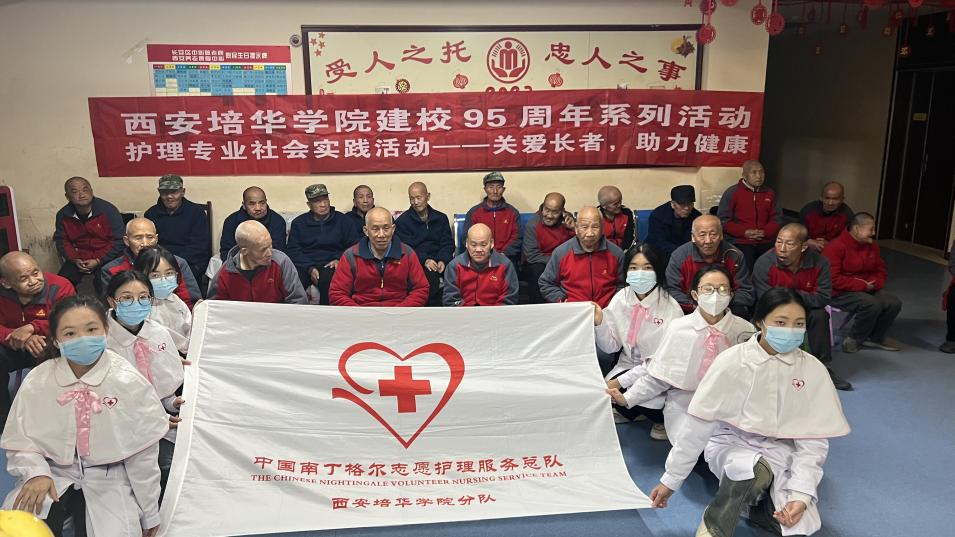 中国南丁格尔护理志愿者服务队西安培华学院分队于2017年成为全国第228支分队,成立6年来,服务队立足乡村、社区及养老院,进行以实践为主,宣讲为辅的常见病、多发病健康教育、慢性病防护管理、急救培训、老年健康照护、心理护理疏导以及中医护理服务等志愿服务活动,把专业知识与技能送到亟待帮助的群众身边,促进群众身心健康,发挥大学生志愿者在建设健康中国中的积极作用,增强大学生治病救人的职业精神,提高其专业实践能力。