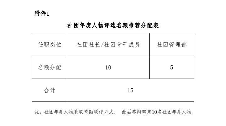 为进一步提升学生社团和社团管理部成员的凝聚力、向心力、服务力,挖掘在学生社团工作中领导力典型、创新力卓越、奉献力突出的先进个人,激发全校学生社团成员积极投身社团活动,助力校园文化繁荣丰富,推动我校学生社团工作迈向新的高度。经校团委研究决定,开展2023-2024学年学生社团年度人物评选工作。现将有关事项通知如下。