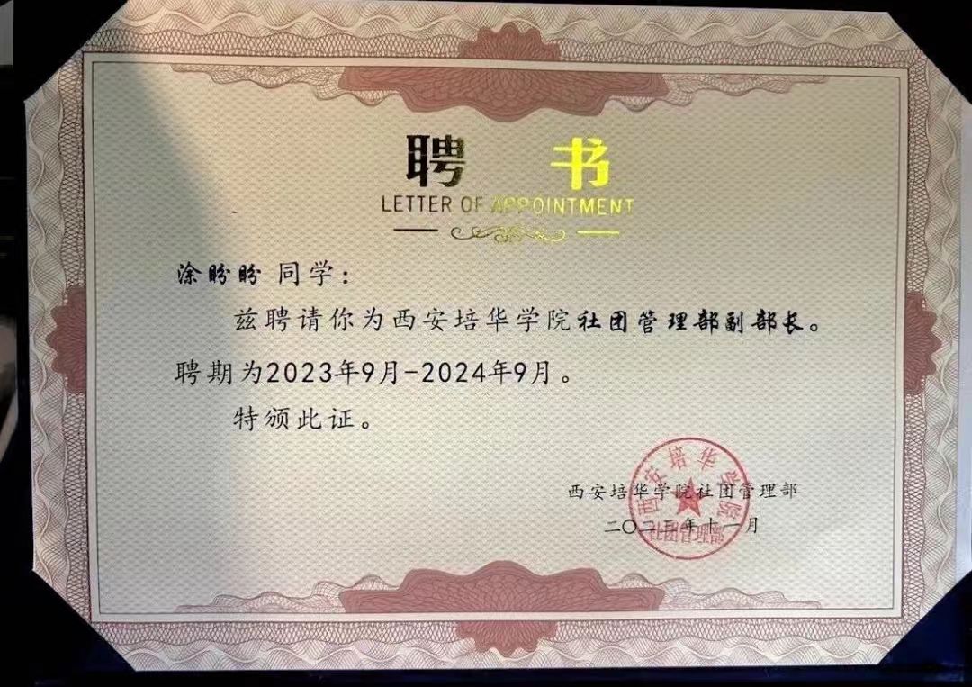 “糊涂”老师在生活中幽默风趣,在工作中则是社管大家庭中默默无闻却极其优秀的幕后工作者。培华社联这一年推文的结尾总会出现7个字——责任主编:涂盼盼。她总是用心制作每一篇推文,从标题的斟酌到内容的润色,再到排版的设计,每一个细节都经过她的反复推敲。每一篇推文都充满创意和美感,能够在第一时间吸引大家的目光。她的工作不仅仅是文字的组合,更是艺术的表达。虽然她的工作大多数时候都在幕后,但她的努力和付出却在每一篇推文中得到了最好的体现。她用实际行动诠释了“勤奋”、“用心”和“专业”的真正含义。正因为有她这样的优秀幕后工作者,我们的团队才能不断进步,才能为大家带来更好的内容和视觉享受。