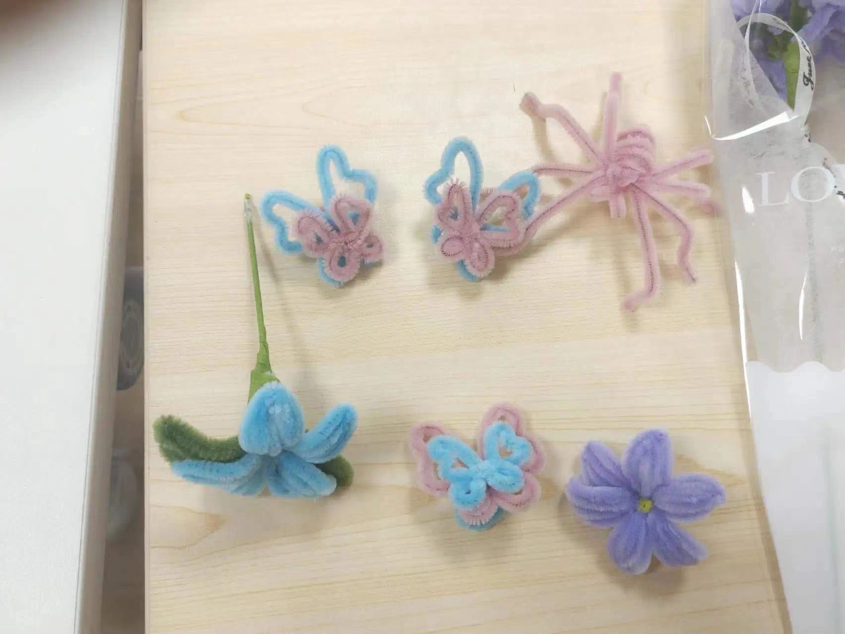 一根根小小的扭扭棒,在不知不觉中,原本零散的材料,很快在同学们的手里变成了栩栩如生的郁金香,百合花,可爱的蝴蝶,还有蜘蛛。大家相互展示,看着自己亲手制作的花束作品,享受着即将给母亲做出礼物的喜悦。这份礼物充满爱意,是孩子们亲手制作的成果,体现了对母亲无尽的敬爱和感恩之情。
