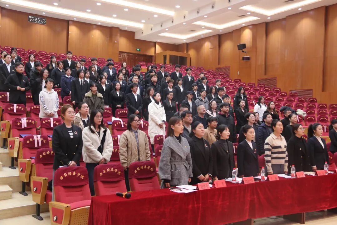 激昂嘹亮的旋律在维之图书馆报告厅中回荡,悠扬曲调穿透空间、直抵人心。全体参会人员起立肃立,目光坚定、齐声跟唱,每一句歌词都凝聚着对理想的追求,每一段旋律都传递着对使命的担当。