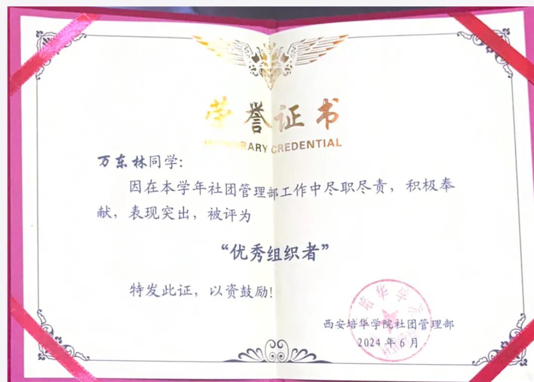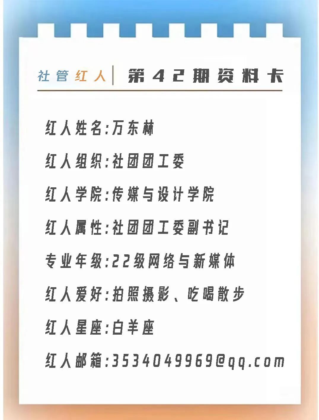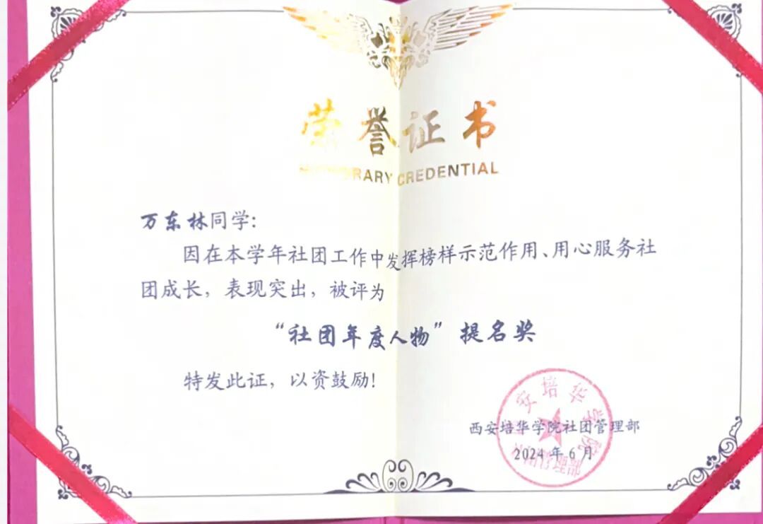 终于轮到我们万东林学长了,在我心里,他就像社团里的“定海神针”。日常社团事务里,他真的是超级靠谱。每次活动前,他都会提前到场,仔细检查设备、布置场地,不放过任何一个小细节,让我们活动开展得特别顺利。要是遇到突发状况,比如设备突然出问题,他也能迅速想出解决办法,沉着冷静的样子让人感到安心。
