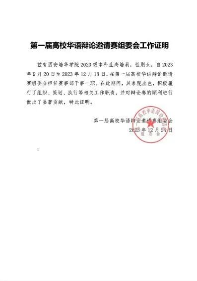 第一届高校华语辩论赛赛事部干事