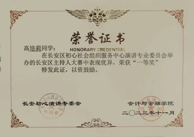 长安区主持人大赛一等奖