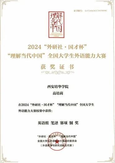 外研社·国才杯“理解当代中国”英语组笔译赛项铜奖