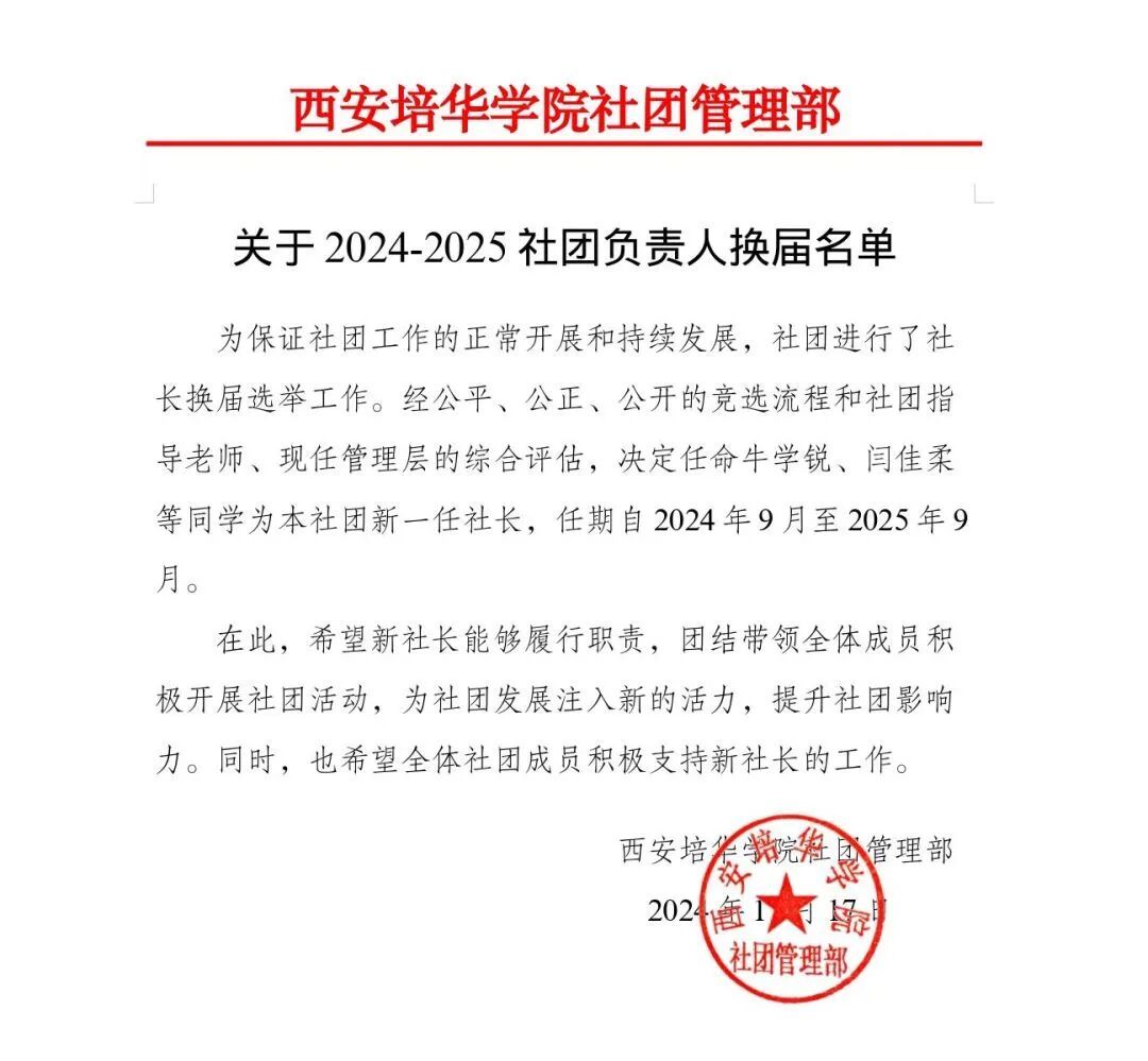 回望过去的一年,每一份社团活动的精彩呈现,都凝聚着社团成员们的汗水与智慧。每一任社长的交接,都象征着社团精神的传承与发扬。将手中的接力棒传递给下一任社长,传递的不仅是职务,更是那份对社团的热爱与坚守。