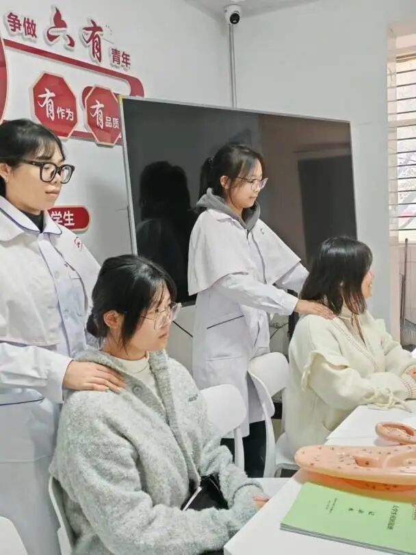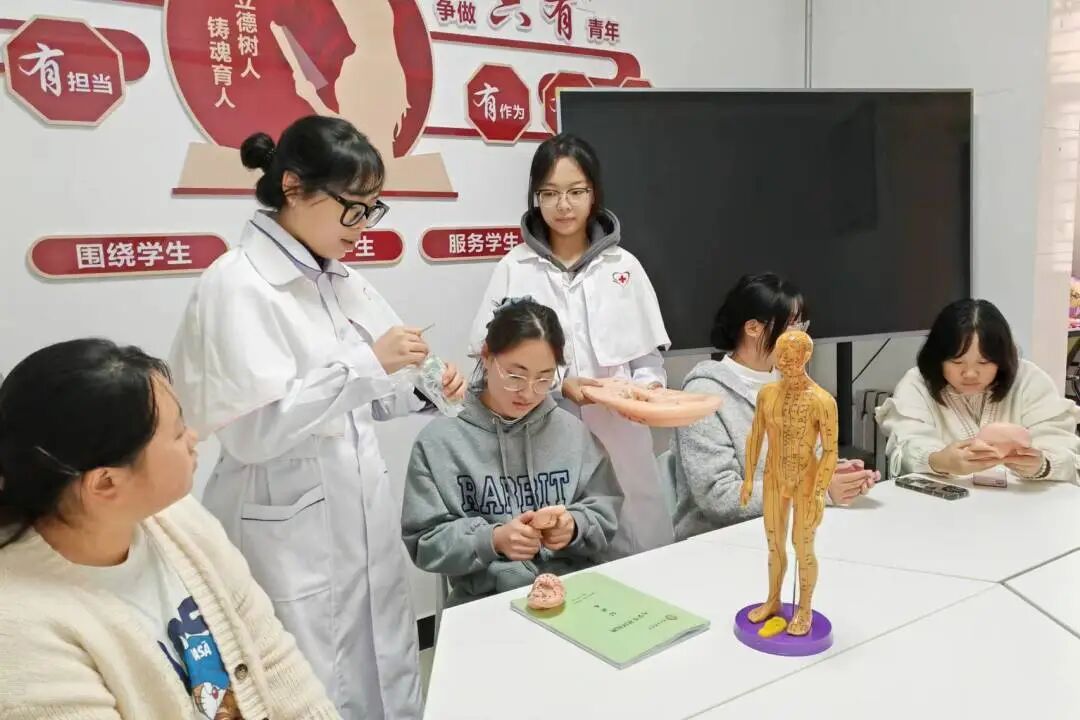 南丁格尔护理志愿者服务队于2024年11月14日在明德学生社区20号楼开展了以“传承瑰宝,守护健康”为主题的中医文化活动。在此次活动中副队长为参与活动的同学介绍了耳穴埋籽、推拿按摩和人体的经络的相关知识,让学生们对本次活动有了更进一步的了解。经过此次“中医文化进社区”活动,学生们不仅感受到了中医的神奇魅力,更激发了他们对传统文化的热爱与传承意识。让我们携手并进,共同推动中医文化在年轻一代中的传播与发展,让古老的中医智慧在新时代绽放出更加璀璨的光