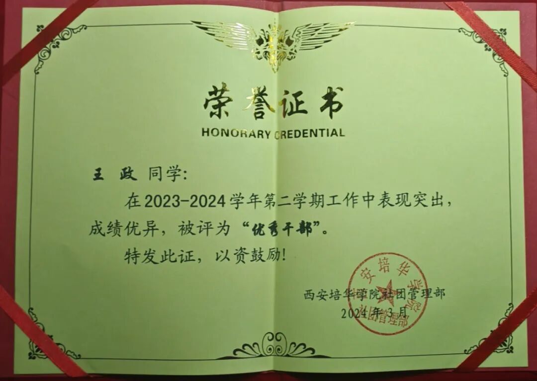 在我的心中,王政同学是一个比较话少的孩子,也不太善于表达,但是他会用实际行动来回应大家,对大家也很好!第一次认识他从别的部门过来,都很拘谨吧,但是呢他也很热情,一直很有礼貌,后面慢慢熟悉起来发现这孩子也很善良!在后面当干部的时候作为我们部门的唯一男同志总是被“派”去做一些“大”事情哈哈哈,但是他也没有说什么,真的非常感谢一直帮助大家做许多累活,辛苦咯!认识了两年多,在工作中我还说过他几次,但是他也没有放在心上,很开心在这个大家庭相识度过了一些有意义的时刻,也祝王政同学在未来的人生道路中顺顺利利,发光发亮,找到属于自己的幸福之光,完成自己的梦想!@王诗晴