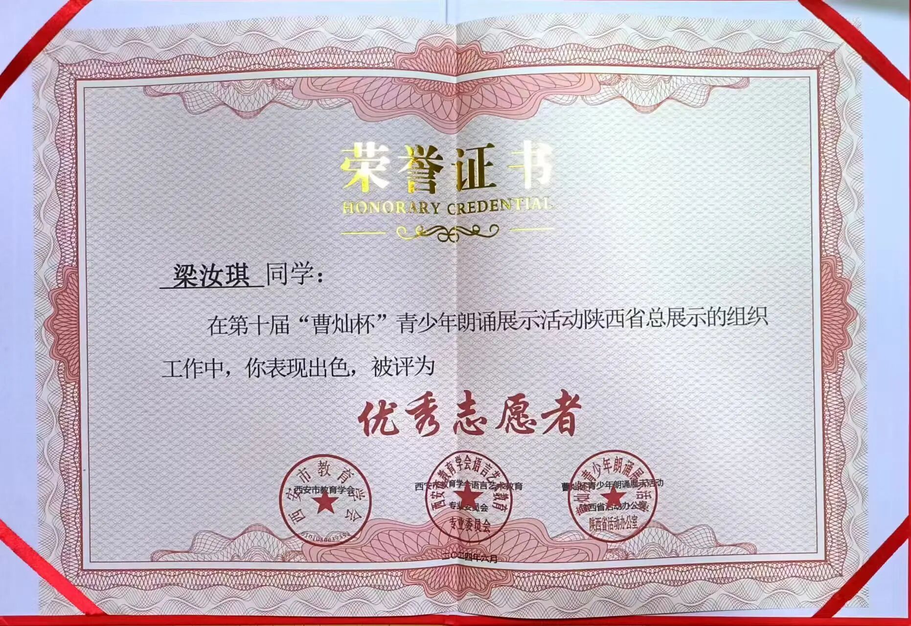 第十届“曹灿杯”青少年朗诵展示活动优秀志愿者