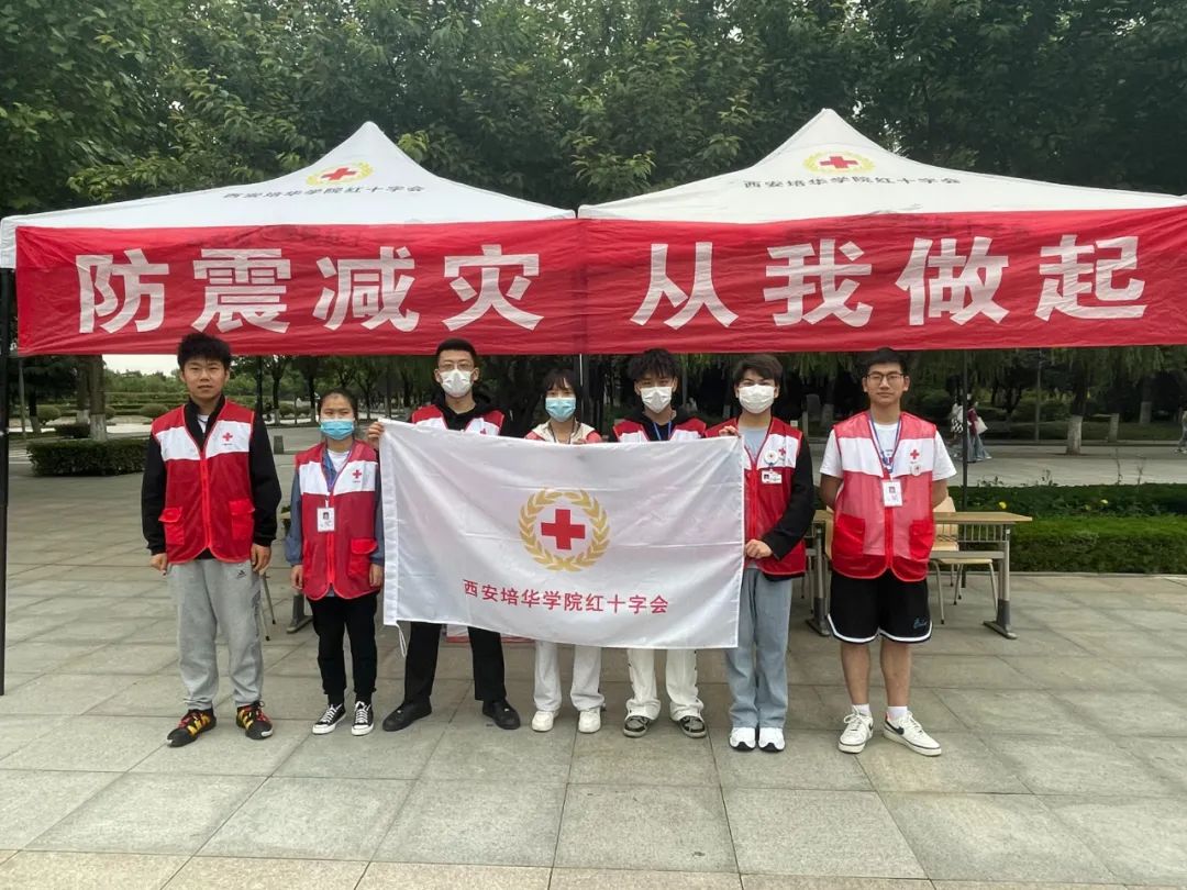 西安培华学院红十字会于2022年5月12日—13日在综合楼西广场开展了“防震减灾,常记于心”主题活动。