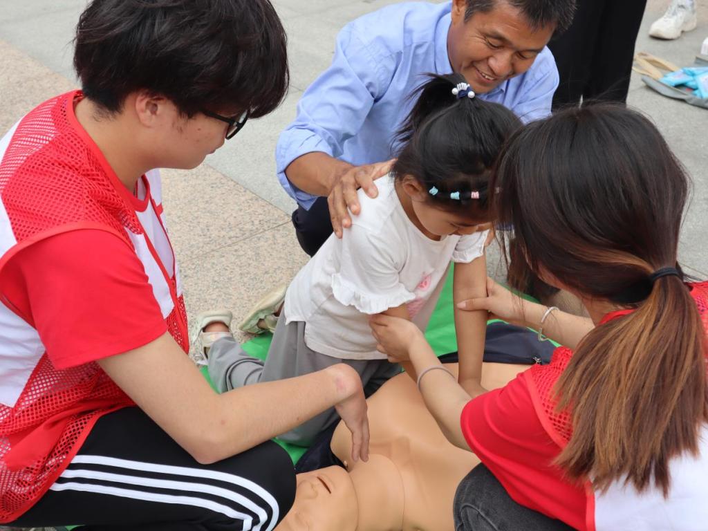 4. 2022年8月12日,西安培华学院红十字会阳光成长服务队走进延安市安塞区延河文化广场进行应急救护知识的宣讲,提高群众应对突发事件和意外伤害的能力。