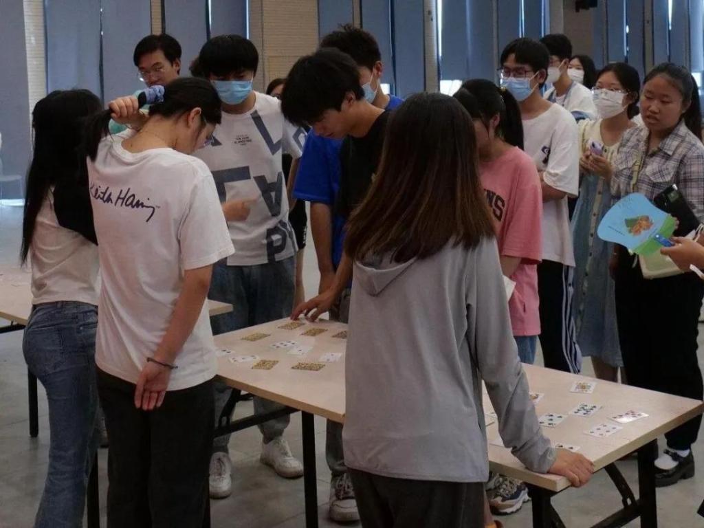 每组每次一人从起点出发进行翻牌,翻到顺序正确的牌则可以继续翻牌,没有翻到则换下一个人翻牌,直到从A-K全部按顺序翻出。这个游戏考验了同学们的协作能力和团队合作能力。