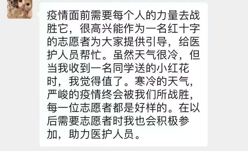 尽管当下疫情形势严峻,封闭管控升级,红十字会的志愿者们仍然坚守岗位,维护检测队伍秩序并协助医护人员完成核酸检测充分发扬并传承“奉献、友爱、互助、进步”的志愿者精神。