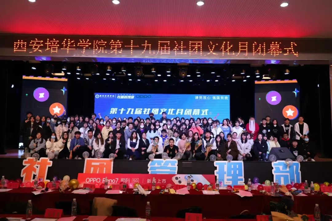 以“青春强国砥砺奋进,社团文化绽放光彩”为主题的西安培华学院第十九届社团文化月闭幕式在2021年12月11日于大学生活动中心圆满落下帷幕。在本次社团文化月的活动中,各个社团充分展示自身风采,用激情的旋律跃动青春。