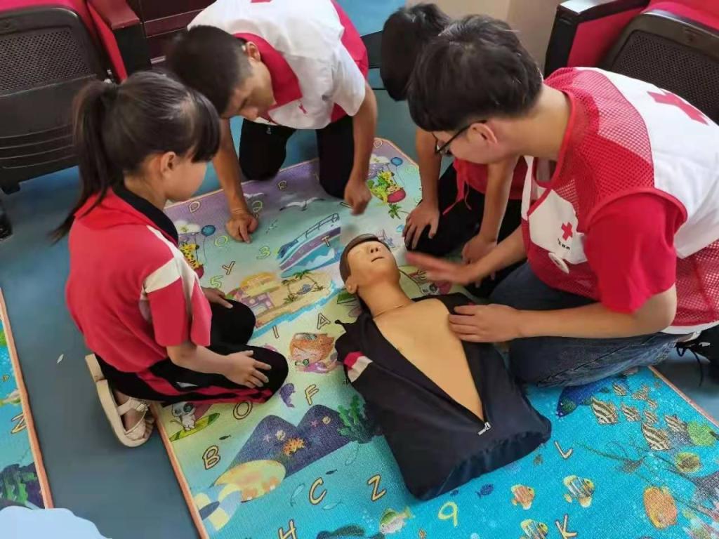 2021年7月12日,阳光成长服务队与安塞区红十字会、安塞红十字蓝天救援队一同前往化子坪镇中心小学开展 “学党史 办实事”应急救护培训进校园活动。让孩子们从心肺复苏、创伤包扎、海姆立克急救法等应急救护知识中学到了如何应对生活中的突发意外,也增强了自我防护意识。