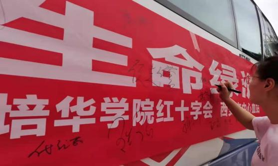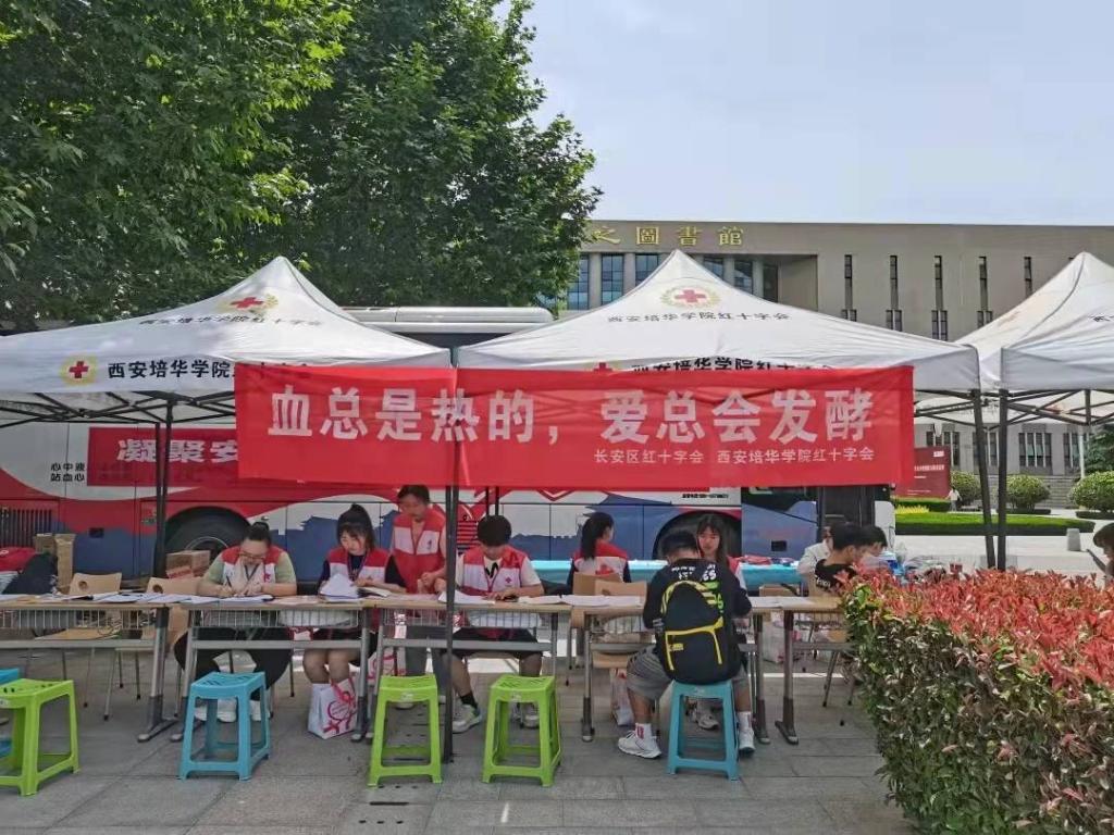为了弘扬“人道、博爱、奉献”的红十字精神,倡导献血救人、救死扶伤的高尚人道主义行为,培养在校大学生的无私奉献精神,帮助更多需要用血的患者,2021年5月25日到5月28日,西安培华学院红十字会联合陕西省血液中心西安市中心血站在我校进行了为期三天的血车进校园无偿献血活动。