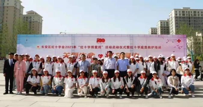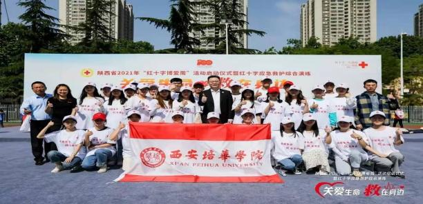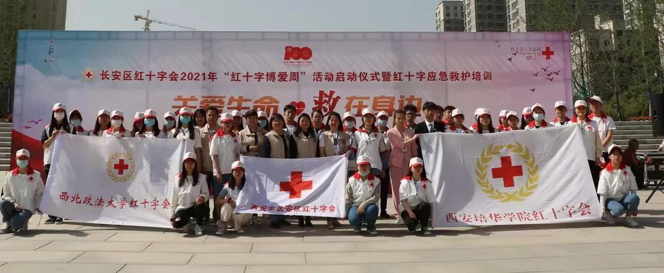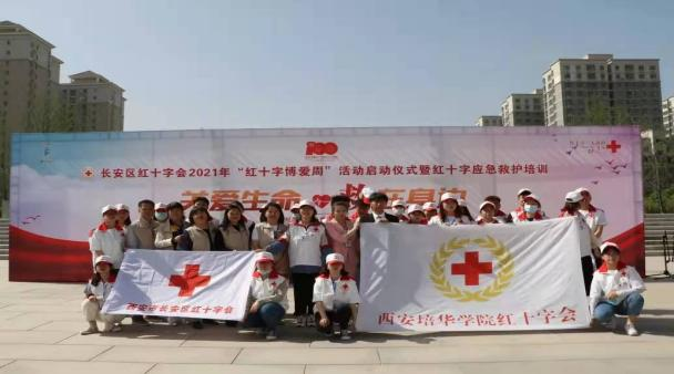 2021年5月8日上午由长安区红十字会主办,西安培华学院、西北政法大学协办的长安区红十字会2021年“红十字博爱周”活动启动仪式在长安中央公园广场举行。仪式结束后由西安培华学院红十字会急救志愿者们现场向群众传授心肺复苏、止血包扎等应急救护技能。同时志愿者们为群众们发放造血干细胞和人体器官捐献、无偿献血、预防艾滋病知识及天使阳光宣传基金的资料及印有“携手人道促和谐 志愿服务为民生”环保手提袋,并且向他们讲解了活动的相关内容。