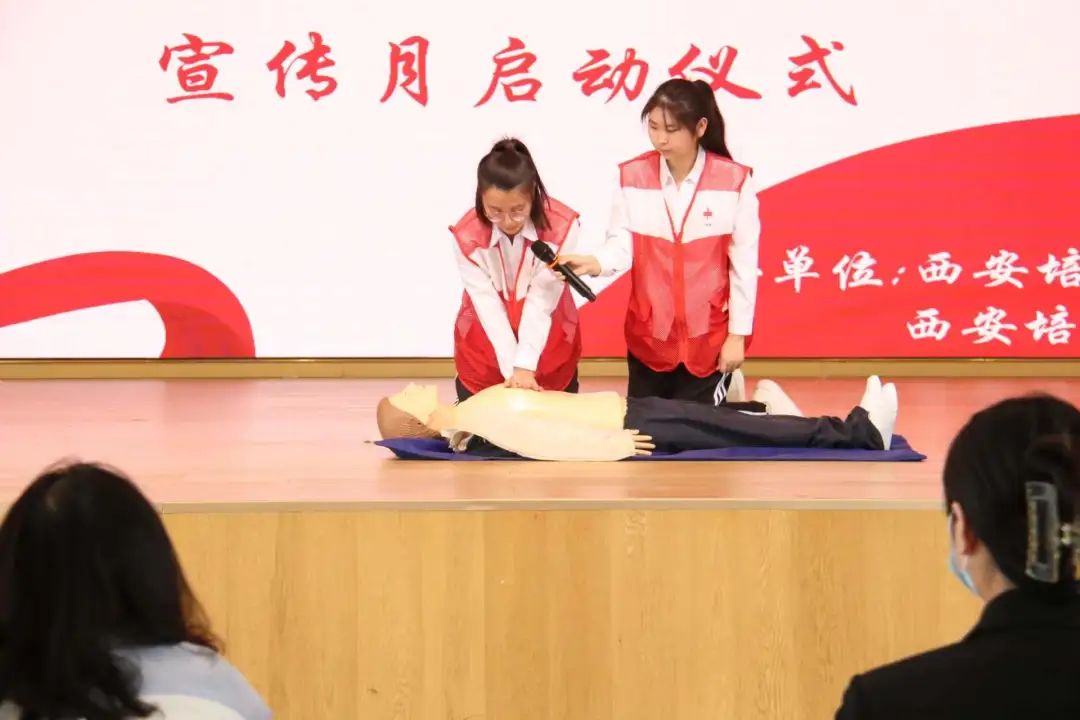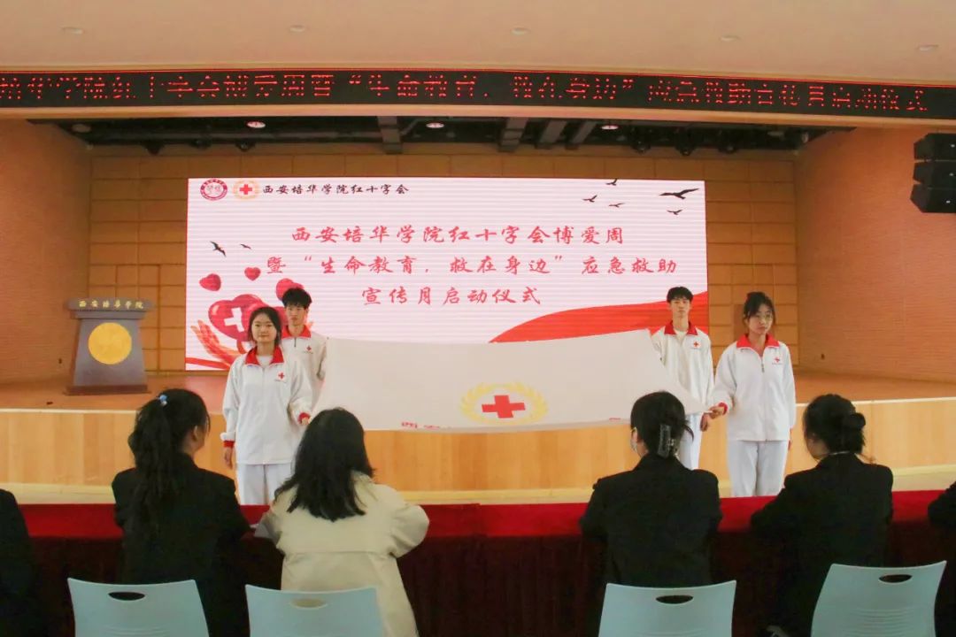 2023年5月8日中午12时,西安培华学院红十字会在恒友楼四楼报告厅开展了西安培华学院红十字会五八博爱周暨“生命教育,救在身边”应急救助宣传月启动仪式。