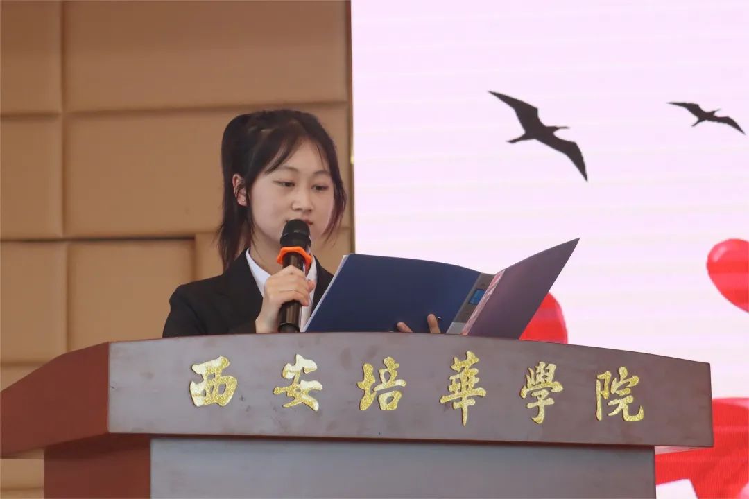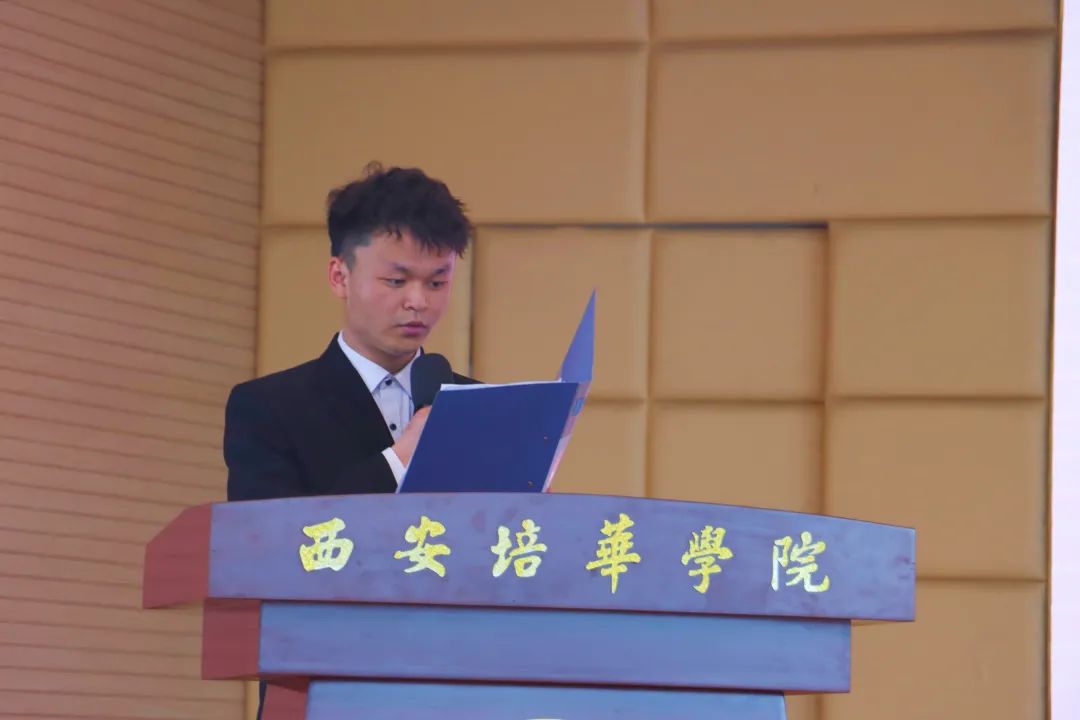 西安培华学院红十字会学生分会副会长刘佳璇带领全体会员进行宣誓红十字誓词