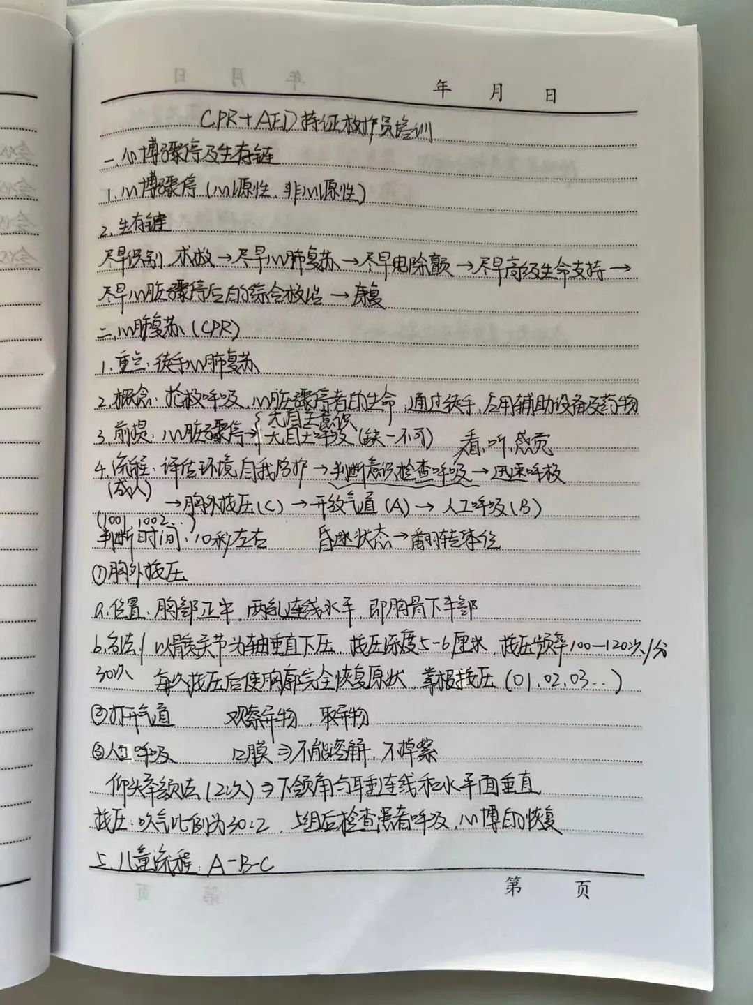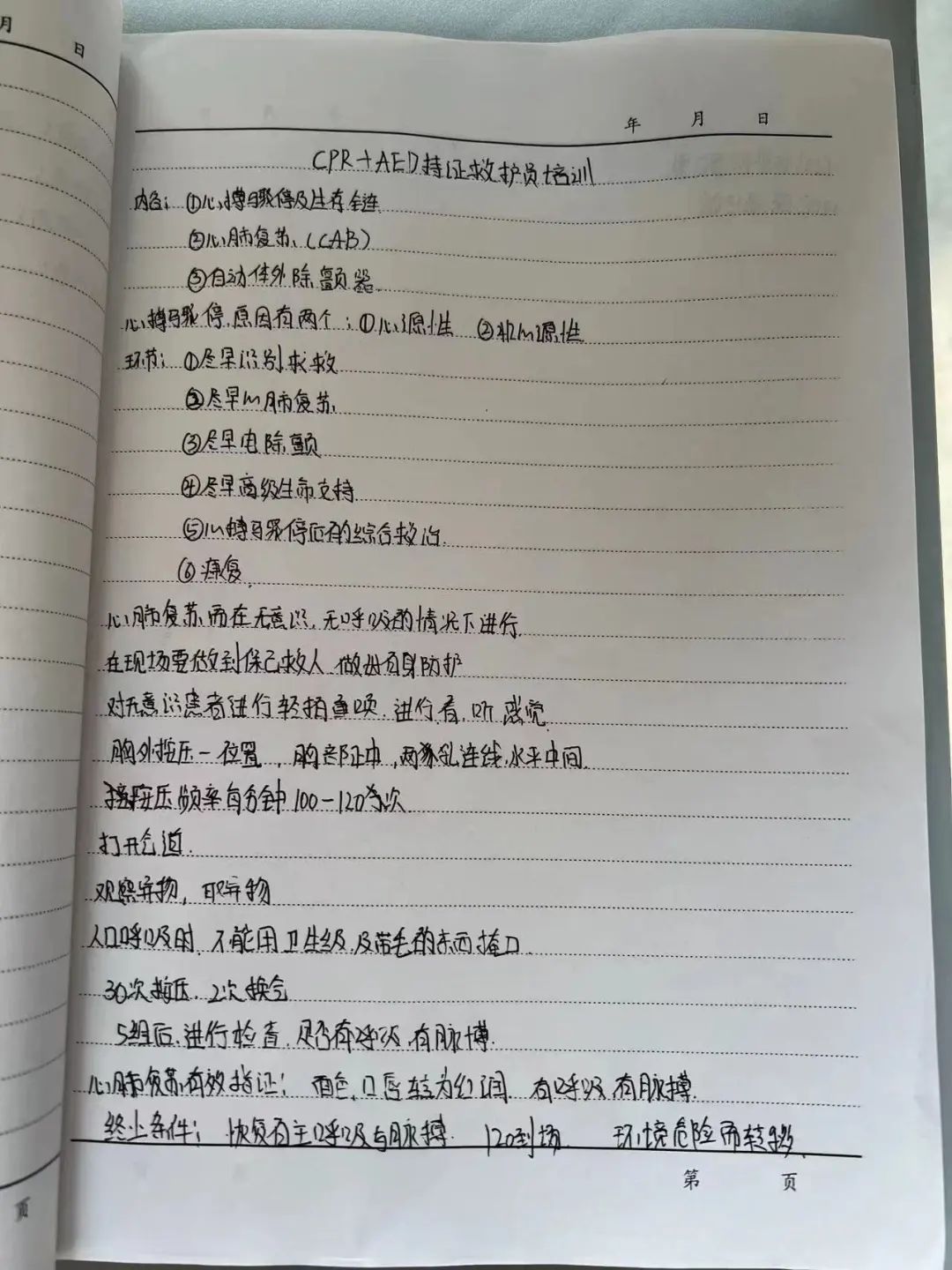 今天是2023年5月12日,我接受了心肺复苏的培训,在这次培训中,我觉得掌握急救知识和能力非常重要,我了解到了在人失去意识和呼吸时是多么的危险,也了解到了抢救的黄金4分钟,在这次培训中,我成功掌握了心肺复苏的技巧和过程,并通过测试,拥有了证书,我认为应全面推广急救培训,希望可以降低应心脏骤停而无法及时救助的死亡率。
