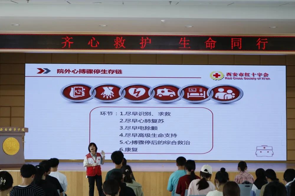 为了提高同学应对突发灾难和紧急事故的自救互救技能,西安培华学院红十字会邀请西安市长安区红十字会陈莉、张蕊娜、孟芊、李易四位老师于2023年5月12日在恒友楼四楼报告厅举行救护培训活动。