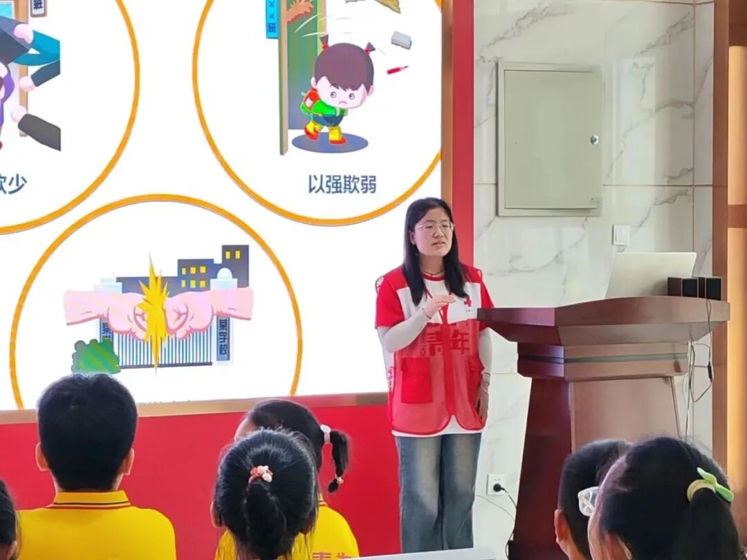 防校园暴力。志愿者结合生活中常见的案例,生动形象地为学生们讲解防校园暴力课程。内容包含如何增强自我防范和应对意识、如何运用恰当的方式保护自己等,课程中渗透故事、游戏活动等不同环节,以喜闻乐见的方式提高其自我防范和保护意识。